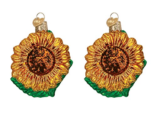 Set of 2 Old World Christmas Garden Sunflower Glass Blown Ornament bundled by Maven Gifts