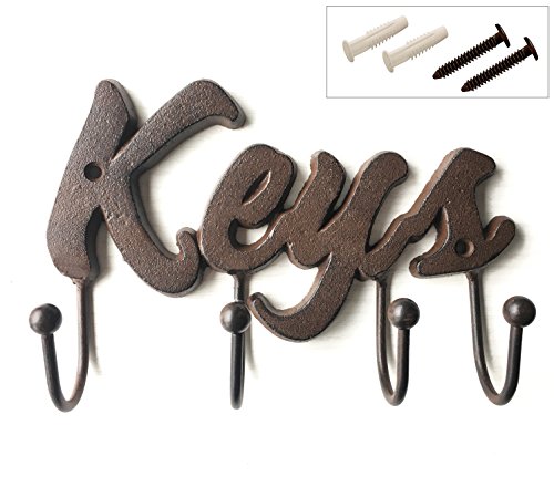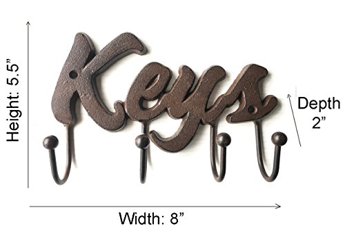 Cast Iron Decorative Key Holder - Cast Iron Wall Mount Decorative Keys Rack in Antique Brown Color - Metal Key Hooks Organizer - Screws and Anchors - 8x5.5" - Special Housewarming Gift