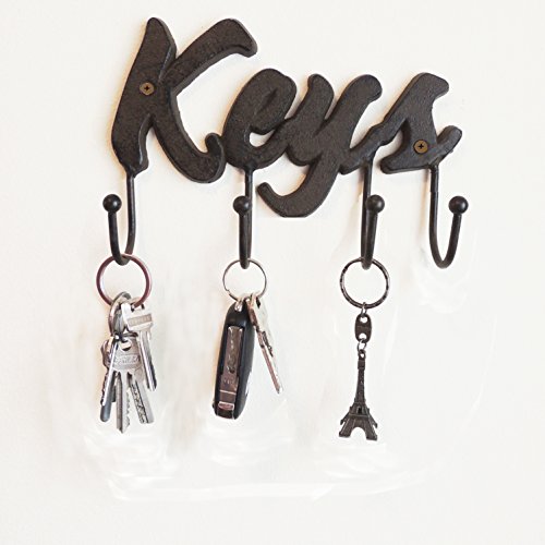 DECORATIVE KEY HOLDER - Keep your keys in place every time with this cast iron sturdy wall mounted organizer rack with 4 hooks. This special metal will never rust due to a special coating but can give your hallway a vintage look. Our decorative key holder has an italic, rustic look that will give your home a touch of country-style to your house