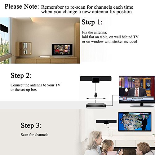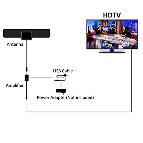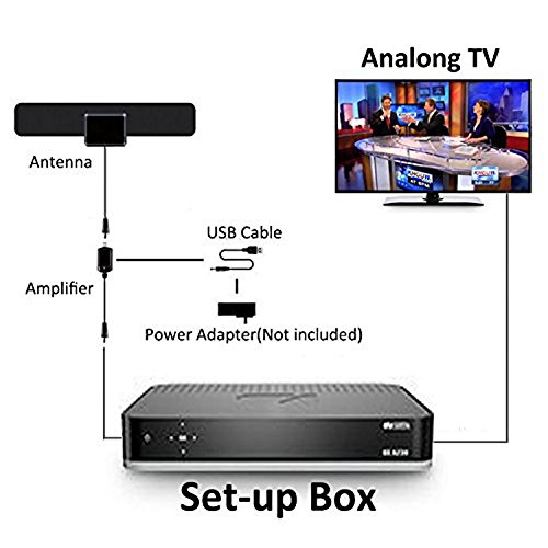 OPERATION CORRECTLY of INDOOR DIGITAL ANTENNA Set up according to the manual, you should make sure you have connected the digital antenna correctly to HDTV (TV with Digital box). 1. Put the indoor antenna to a higher location like on the wall, better close to the window and no obstacles between your home and Towers. 2. Keep re-scan channels after moving the hdtv antenna. Sometimes moving a few feet can make big difference . PLEASE NOTE: HomSafe antenna is a digital HDTV antenna that it only can direct-coupling to HDTV and analog tv need a digital converter first. Amplifier of this digital antenna can get power from TV USB port (Power adapter is not included , but most adapter is applicative)