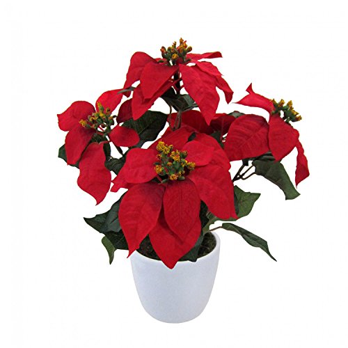 Artificial Flower Red Poinsettia Including White Ceramic Vase, 14"
