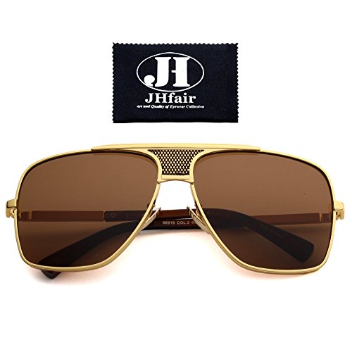 JHfair Brand Designer Metal Square Aviator Fashion Mens Sunglasses