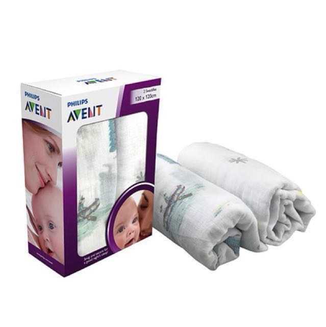 2pc Baby Swaddle x 1pcPhilip Avent Muslin is 100% cotton muslin swaddle - stroller cover, burp cloth or nursing cover to name just a few - it surrounds your little one in comfy goodness round the clock