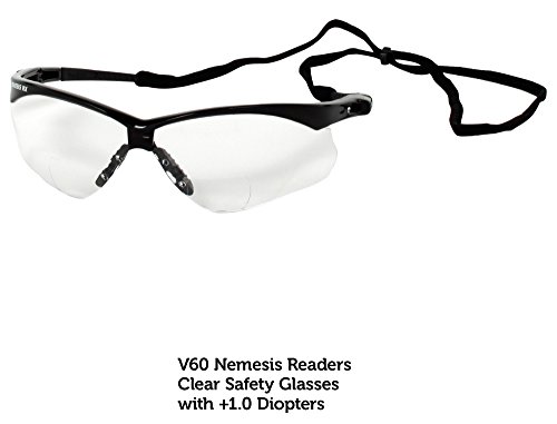 Jackson Safety V60 Nemesis Vision Correction Safety Glasses (28618), Clear Readers with +1.0 Diopters, Black Frame, 6 Pairs / Case