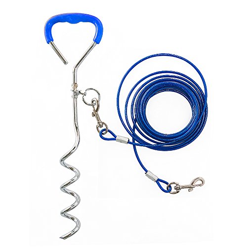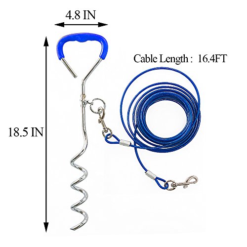 Convenient This combo includes an 18 inch spiral tie out stake and a 16 ft steel cable up to 40 pound.