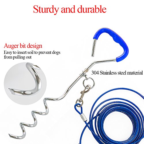 Anti-winding Your puppy will be comfortable. The stake made of 195 carbon steel can deeply screwed into the ground, with the metal cable and anti-winding rotating metal ring design, your pets can freedom to rotate 360 degrees around the stake, cable will not winding your pet.