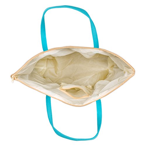 Product Description This zippered tote bag is an adorable accessory to take to the beach! Measures 20 x 15 x 6 inches with durable handles. Made of polyester/cotton blend, wipe clean. Zippered pocket on the inside, zipper closure on the top. 0