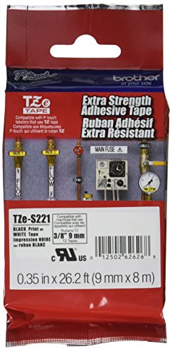 Brother Tape, Black on White extra strength, 9mm (TZeS221) - Retail Packaging
