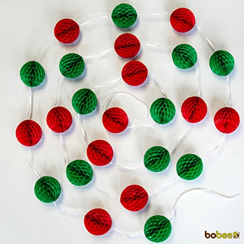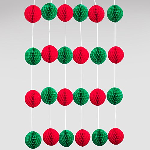 The red and green honeycomb garland 12-foot strand is a festive holiday home decoration or use for a Christmas party. Drape along the fireplace mantle, intertwine along the staircase bannister or hang around a doorway.