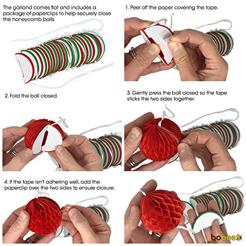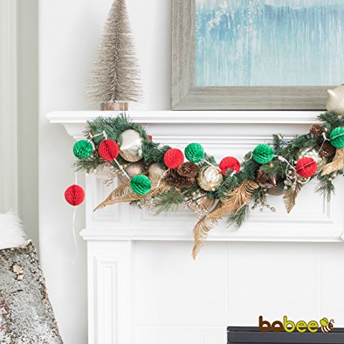 Add to your holiday garland greens or use alone, this Christmas decor is made of tissue paper and includes 24 honeycomb balls. The garland decoration is pre-strung, but you can cut it to your desired length.