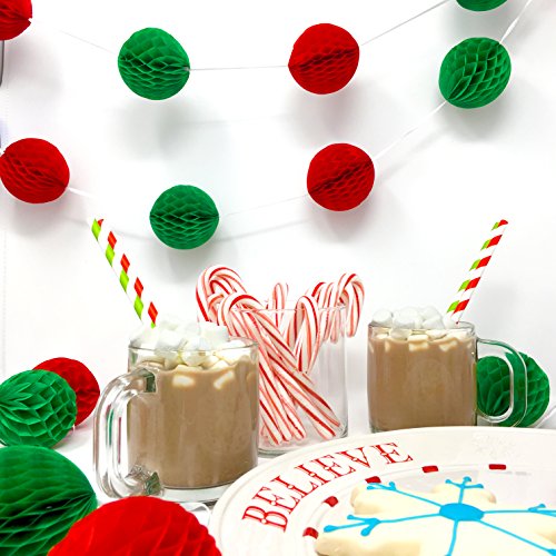 Bobee 12 foot Red and Green Honeycomb Garland Christmas Party Decorations (144 inches)