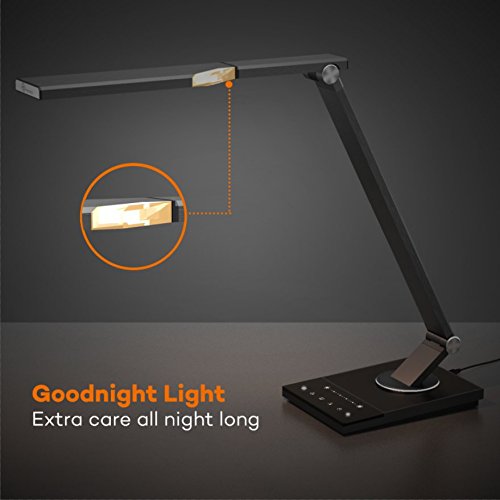 LED Desk Lamp, TaoTronics Stylish Metal Table Lamps, Office Light with USB Charging Port, 5 Color Modes, 6 Brightness Levels, Memory/ Favorite Function, Timer, Night light
