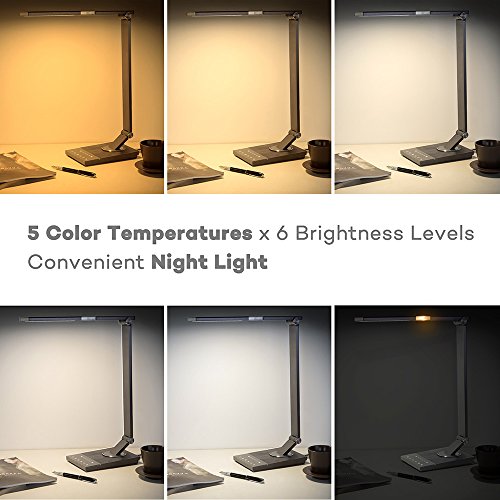 - More Colors: More Light: 5 color modes and 6 brightness levels up to 1200 lux for the desk lamp with usb