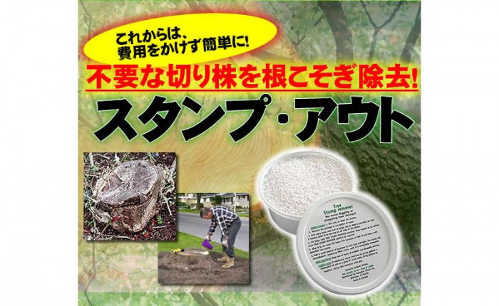 切り株の除去って思った以上に難題。チェーンソーで試みるも、根の深さに断念→専門業者に頼む→高額な請求が!そんな時はスタンプ・アウトをお試しください。水溶液を切り株に注入し数ヶ月放置、その後灯油で燃やせば根こそぎ除去!人体、植物に無害な成分なので安心。すてきなお庭を有効活用! 内容量/400g、カナダ製 ※サプライヤー直送品 ご注文後3~4営業日後の出荷となります【商品名】スタンプ・アウト 2個組