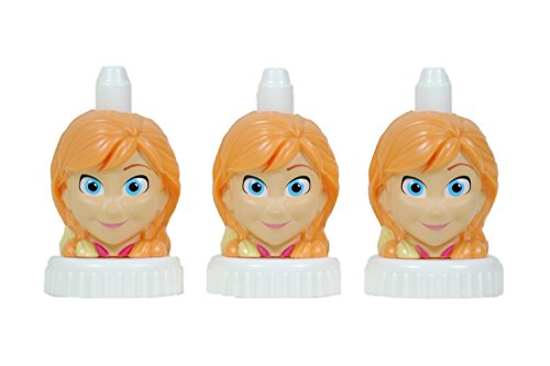 - Features Anna from Disney's Frozen; Spill-proof bottle toppers