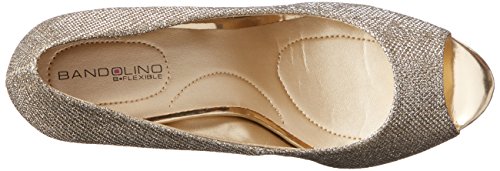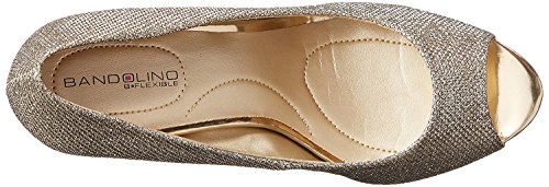 Studio : Bandolino Footwear Publisher : Bandolino Footwear Binding : Shoes Product Description Even when we're nowhere near a catwalk, we can always strut our stuff in the timeless Bandolino Supermodel pump. Offered in faux patent or metallic fabric with an alluring peep toe, this women's high-heeled dress shoe pairs beautifully with a wide range of ensembles. The lightly cushioned footbed adds comfort atop the forefoot platform and heel, wrapped for a streamlined look, while the rubberized synthetic sole provides a steady step. 0