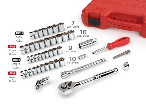 TEKTON 1/4-Inch and 3/8-Inch Drive Socket Set, Inch/Metric, 6-Point, 3/16-Inch - 3/4-Inch, 5 mm - 19 mm, 45-Piece | 13501
