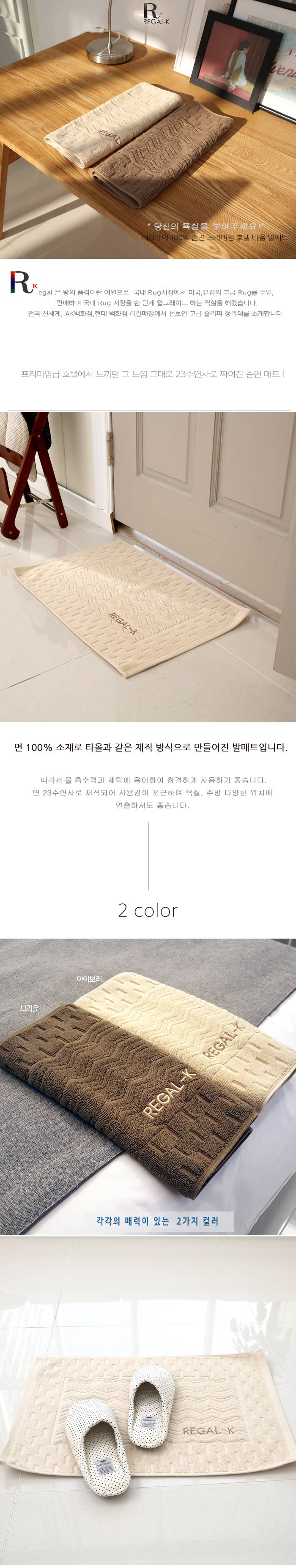 따라서 물흡수력과 세탁이 용이하여 청결하게 사용하기 좋습니다.욕실, 주방, 현관등 다양한 위치에 연출하셔도 좋습니다.