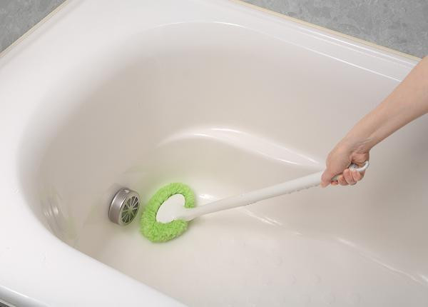 洗いにくい浴室・浴槽の隅にもフィット!長柄のバスクリーナーだから、ラクな姿勢で掃除ができます。