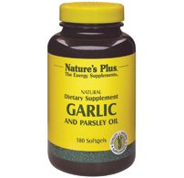 Studio : Nature's Plus Publisher : Nature's Plus Binding : Health and Beauty Product Description Garlic Parsley Oil 180 SoftgelProduct Description Garlic Parsley Oil Softgels presents a double dose of healthful benefits, especially for the circulatory and cardiac systems. Many people are aware that their regular diet does not consistently supply enough of the food-based nutrients their bodies need. Nature's Plus offers a wide array of vitamin and mineral supplements which can effectively fill many of those nutritional gaps. Supplement FactsAmount Per Serving% Daily Value***Calories5Calories from Fat5Total Fat0.5 g0 %*Garlic Oil (Allium sativum) (equivalent to 500 mg fresh garlic)1 mg*Parsley Oil (Petroselinum crispum)1 mg* *Daily Value Not Established ***Percent Daily Values are based on a 2,000 calorie diet