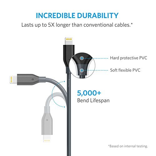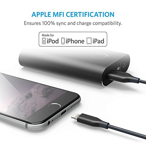 [Description] The Anker Advantage: Join the 10 million+ powered by our leading technology. Incredibly Strong: One of the first ever sync & charge cable built with bulletproof aramid fiber_ PowerLine is much stronger than ordinary cables. Lasts 5X Longer: Reinforced stress points with a 5000+ bend lifespan make PowerLine many times more durable than anything else on the market. Faster Charging: Thick gauge wiring and reduced cable resistance enable PowerLine to provide the fast possible charge via any USB charger_ plus data transfer. What You Get: Anker PowerLine Lightning (3ft including plugs)_ our fan-favorite 18-month warranty and friendly customer service. (Please Note: Not compatible with Lifeproof iPhone 6 / 6 Plus cases.)