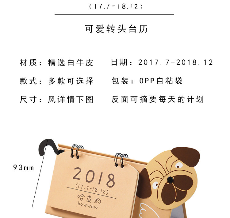 小清新2018日程本记事台历diy桌面小日历学生可爱卡通年历计划本