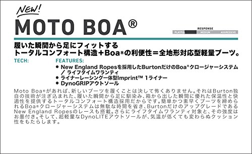 Studio : BURTON Publisher : BURTON Binding : Misc. Product Description KEY FEATURES Burtons best selling boot now with the convenience of a Boa Closure Sleeping Bag Reflective Foil bounces body heat back in on you for serious warmth Total Comfort Construction designed for straight out of the box comfort They say if it aint broke dont fix it but no one said anything about improving it so now theres the Burton Moto Boa Snowboard Boot Built around the same design and technologies that have made the regular Moto a top seller year after year this all new version features the Boa Closure System which eliminates the need to fuss and fight with laces and instead lets you tighten your boots with just a twist of a dial Once youre secured in youll find a surprising amount of support from the Imprint 1 Liner and Total Comfort Construction ensures youre ready to ride as soon as you get the boots out of the box SPECSFlex SoftLacing Boa 0