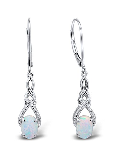 Beautiful Lab Created Opal Dangle Twist Earrings with Diamond Accents