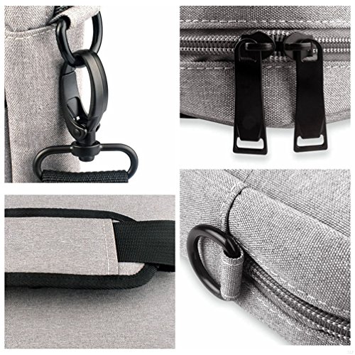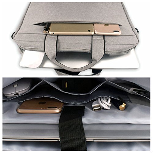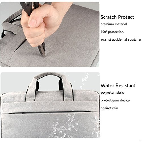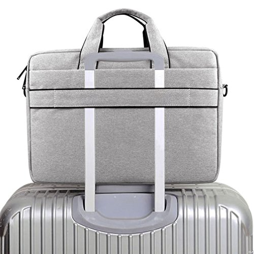 Feature 1. Easy to carry: Adjustable shoulder strap and top handles of the case enable you to carry your laptop in comfort,and can be tucked away in the pockets when not needed. Back belt is easy to fix to the trolley case 2. Many pockets: Side pocket of the bag is ideal for storage of small items such as power adapters, cables, pens and notepads, offering added convenience 3. Water Resistant: the woven exterior utilizes premium polyester fabric material to protect your device against accidental spills 4. Superior Protection: reinforced stitching and premium material provide your laptop with 360°shock-proof protection, while the soft fabric lining provides protection against accidental scratches