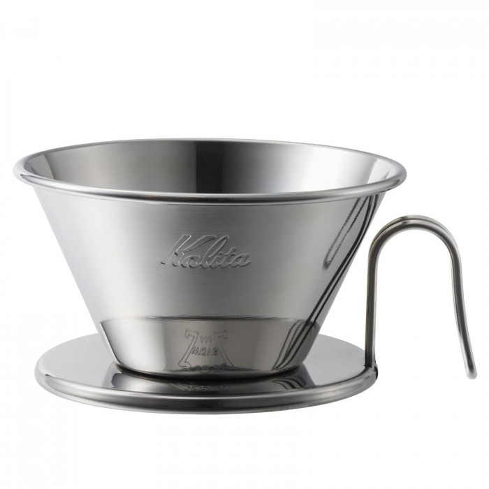 | Kalitaと燕市内の企業とのコラボレーションから生まれたコーヒードリッパー(2~4人用)です。研磨職人が丹精込めて磨き上げることで、洗練された輝きを放つ製品が完成しました。 |