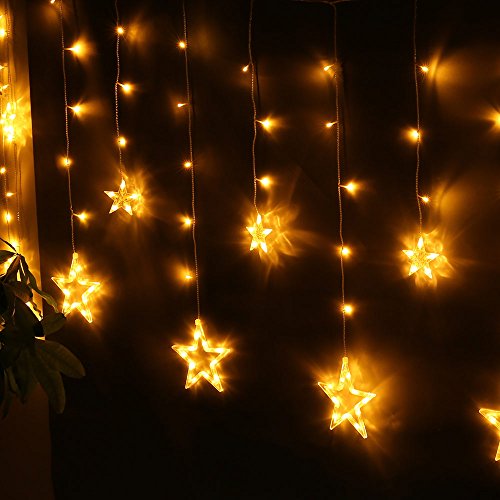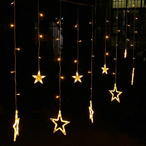 Curtain Star String Lights 138 LED 8.2ft Star Linkable (6 Small 6 Big), Power Operated Christmas Lights for Outdoor, Indoor, Bedroom, Party Decorations (Warm White)
