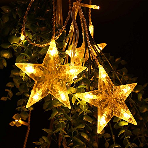 - 12 light stars evenly distribute on a 8.2ft string, each star emitting a beautiful lights. It's a perfect decoration lights for Christmas, Party, Wedding, Holiday, etc.