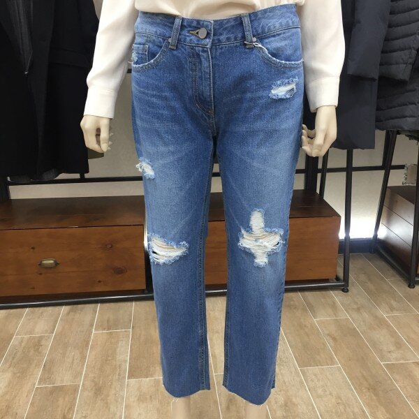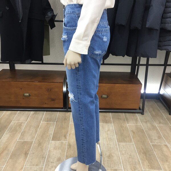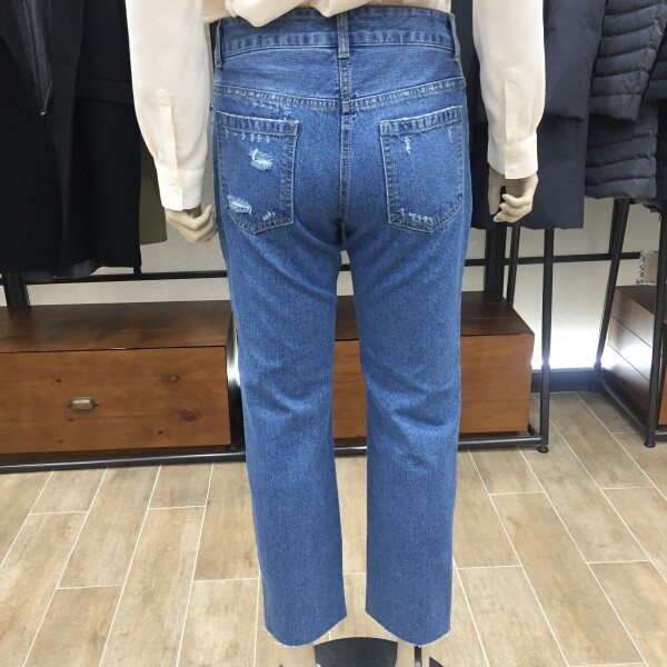 캐주얼한 스타일의 매력적인 데님진 소개해드려요. 다리라인을 딱 잡아 주기를 원하는 분들에게 추천드리는 데님입니다. 탄탄한 소재에다 하이웨스트 디자인으라 힙라인과 군살도 잘 잡아줘요. 자연스러운 워싱과 밑단 커팅 디자인으로 트렌디함과 멋스러움을 살렸구요. 디테일한 헤짐이 포인트로 들어가 평소 캐쥬얼하게 코디하시기 좋아요. 적당히 여유있게 떨어지는 세미 스키니 디자인으로 편안하지만 신경 쓴듯 안쓴 듯 무심하게~ 스타일을 챙기실 수 있어요. 총장길이는 55사이즈 기준으로 87cm 입니다.
