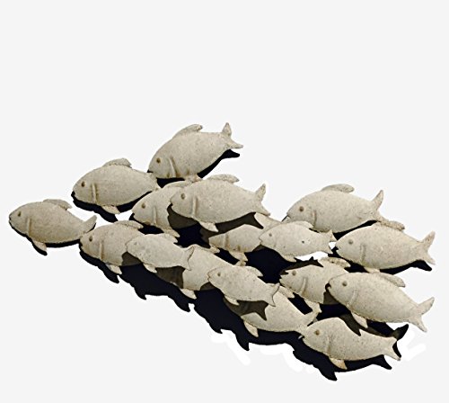 Let your catch of the day be our Cape Cod Fish Wall Sculpture. Made to look like a vintage find from a coastal antiques shop, the distressed surface has been treated to look weathered then coated with lacquer with gorgeous golden highlights. Designed for visual impact, this piece is beautiful by daylight and positively magical by ambient candle light. Handcrafted of cut out and welded iron, this piece measures as follows: 43 ¼ x 24 ¾ x 1 1/8 Inches. Each piece has been cut out and finished by our artisans with meticulous care. Given their handmade and hand-finished nature, slight variations in appearance are to be expected and celebrated. Each item is unique and no two are exactly alike Easy to hang, the back of this sculpture is equipped with a convenient picture hanger. Organically organized, as in nature, each of the 8 fish in this cluster boast beautiful details. Tooled lines and raised bumps come together to form fins, scales and eyes in a well-orchestrated composition. Inspired by nature, this piece is ideal to bring home the feeling of the beach and summer for every day of the year. Our artists have captured a moment of their playful swimming as a school in this inspired sculptural work. A thoughtful gift: Our Cape Cod Fish Sculpture is a picture perfect gift for fishing enthusiasts as well as for everyone who loves warm weather themes. Ideal for celebrating many special occasions like housewarmings, weddings, birthdays and holidays. Enjoy! By Whole House Worlds Welcome to the product line of Whole House Worlds. The New York based company offers high quality, stylish products for every room in the house, and beyond. From the kitchen, to the living room, to the bedroom, dining room, home office, closet and garden: Our criteria are comfort, quality, style and value.Feature