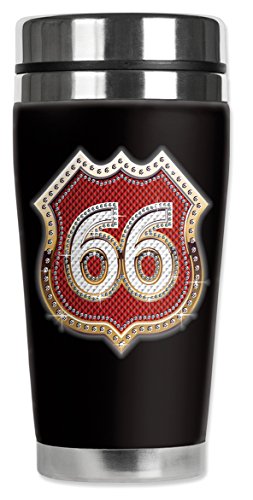 Mugzie 837-MAX "Route 66 Bling (red)" Stainless Steel Travel Mug with Insulated Wetsuit Cover, 20 oz, Black