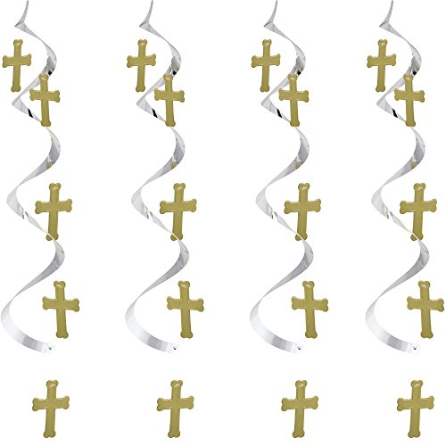 Creative Converting 31480 5 Count Dizzy Cross Dangler Streamer, Silver/Gold