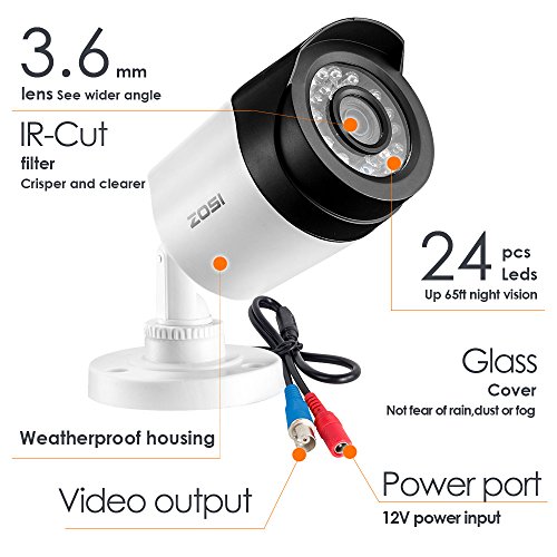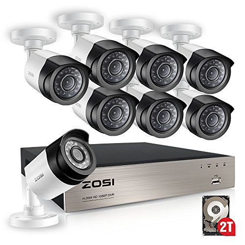 ZOSI FULL 1080P HD-TVI Video Color Security System 8 Channel DVR Reorder w/ 8x2.0 Megapixel 1080P Weatherproof Indoor outdoor Bullet Cameras 2TB Hard Drive Smartphone& PC Easy Remote Access