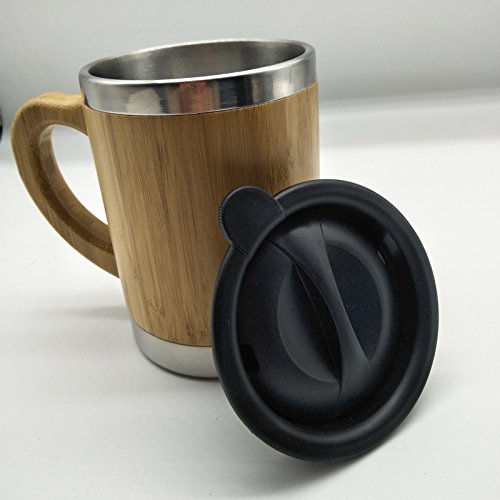 HEAT KEEPER : Doubled wall with a steel and bamboo mug keeps your coffee or tea hot/cold longer. When filled with a hot drink, it prevents burns. Comes with lid to prevent spilling.