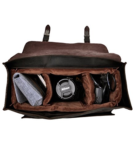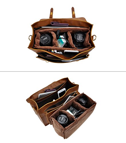 ZLYC Unisex Retro Echtleder Kameratasche DSLR SLR Messenger Bag Mit Abnehmbare Gepolstert