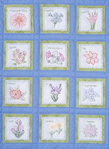 Themed Stamped White Quilt Blocks 9"X9" 12/Pkg-Flowers