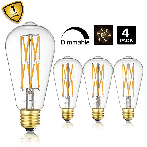 10W Edison Style Vintage LED Filament Light Bulb,ST64(ST21)Led Retro bulb,100 Watt Equivalent Light Bulbs,Warm White 2700K,1200LM,Dimmable, E26 Medium Base Lamp, Antique Shape, (4 Pack)