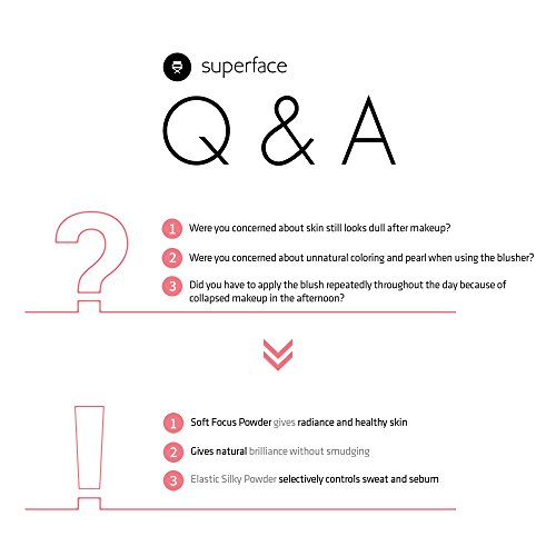 SWEAT AND SEBUM CONTROL : Another amazing feature of our product - elastic silky powder selectively controls sweat and oil (sebum). You somewhat hesitate whether you should put on full make up during the day time because it's hot. Good news! It is okay to use our product without worrying about getting sweaty or looking too much.