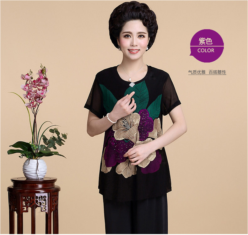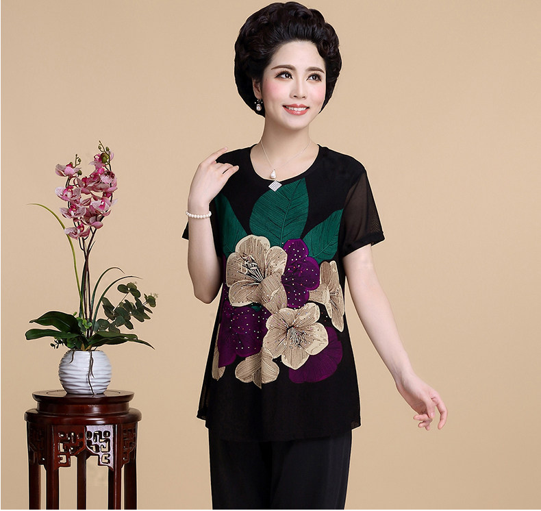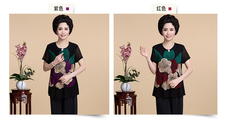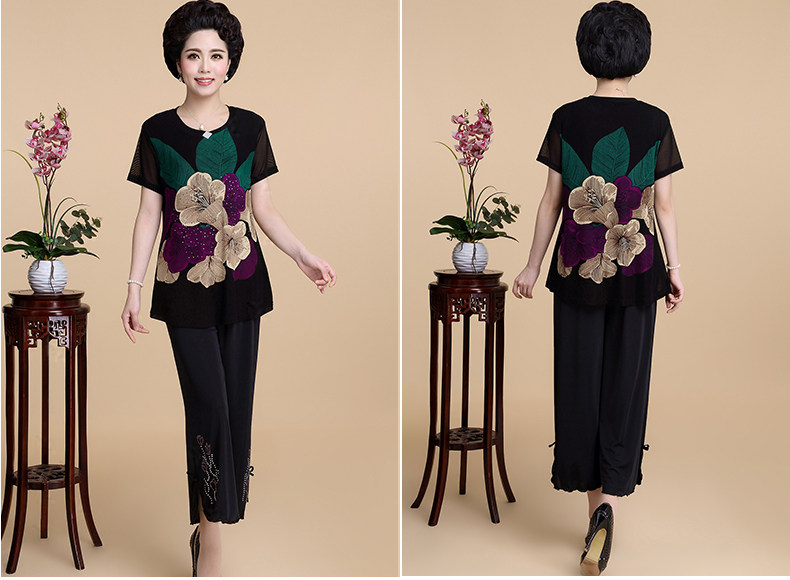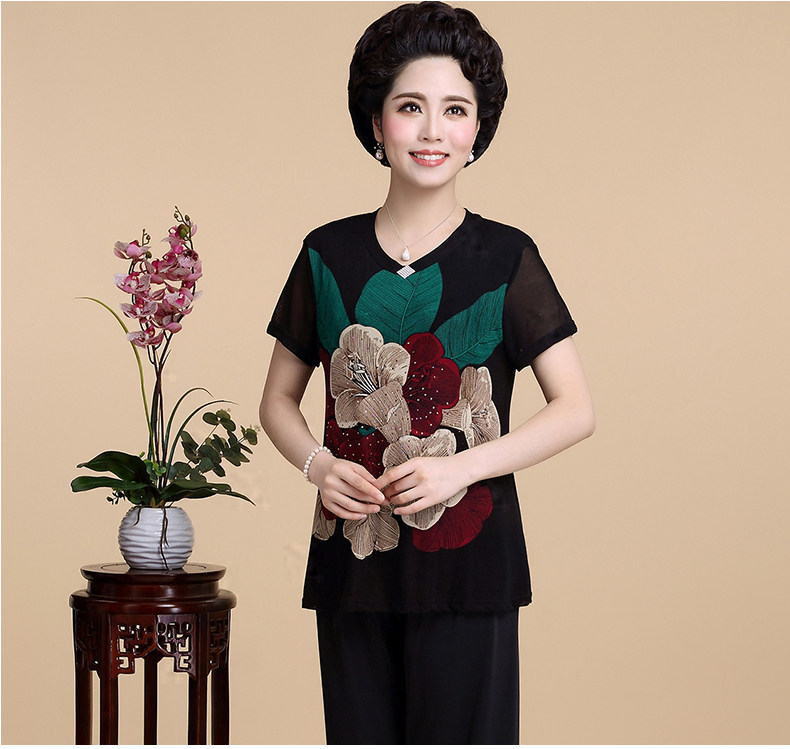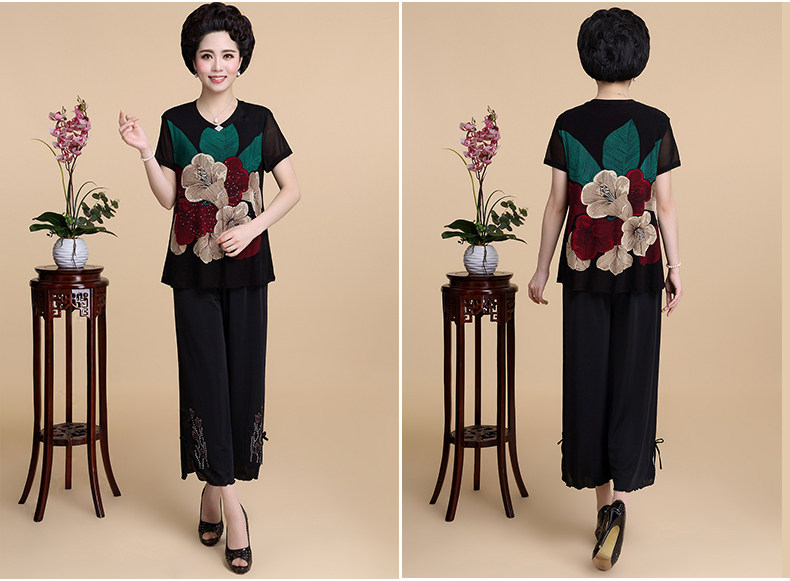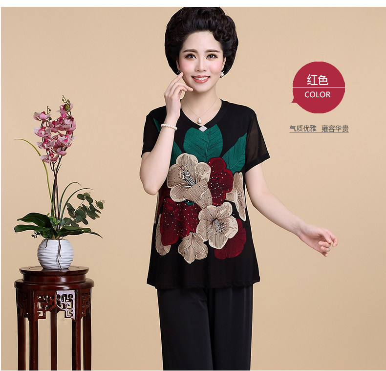 中老年女装夏装套装中年女装两件套妈妈装夏季新品短袖T恤