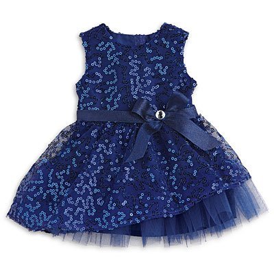 - Her doll will light up the prettiest parties in this sparkly, twirl-worthy outfit. It features: A deep-blue sleeveless dress covered in sequins with an asymmetrical overskirt, a triple-layered dark-blue tulle underskirt that peeks through, and a satin-ribbon waistband accented by an off-center bow and rhinestone A pair of sparkly navy-blue shoes with silver ribbon bows A satin-covered headband with two rows of sequin trim A round “Smart” charm