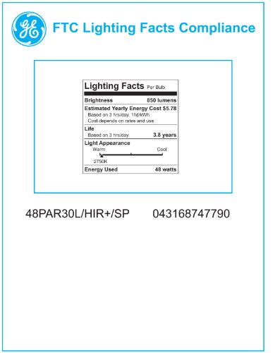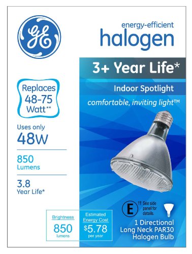 GE Lighting 74779 Energy-Efficient Halogen 48-Watt (75-watt replacement) 850-Lumen PAR30 longneck Spotlight Bulb with Medium Base, 1-Pack