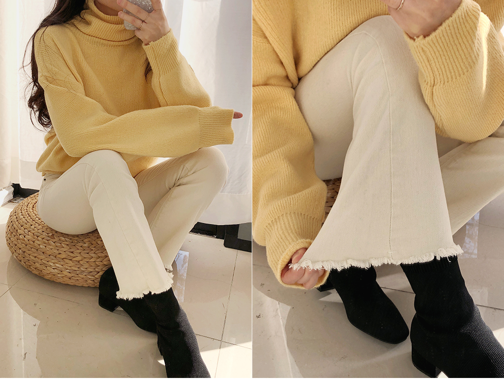 밑단 풀림 스판 부츠컷 데님 팬츠