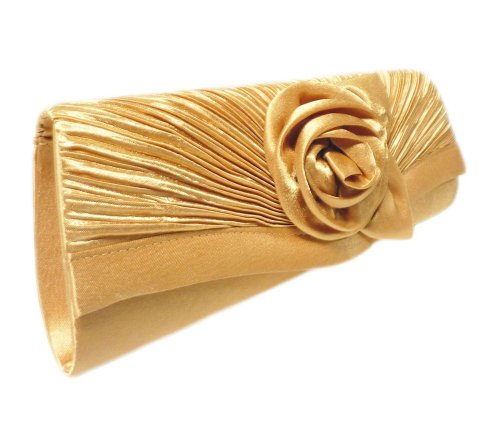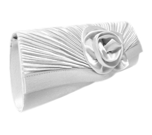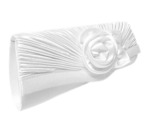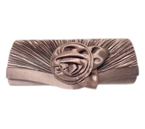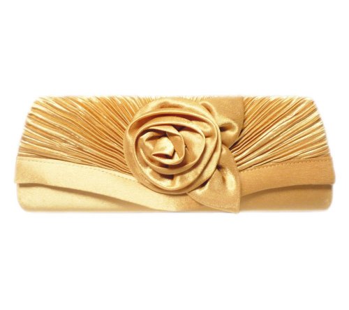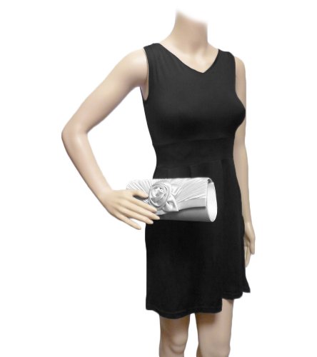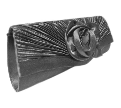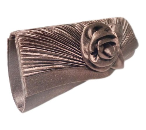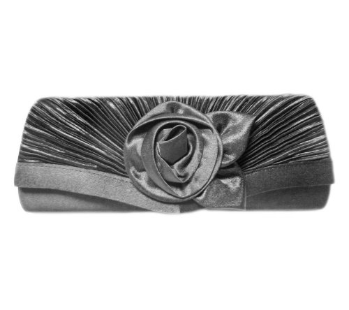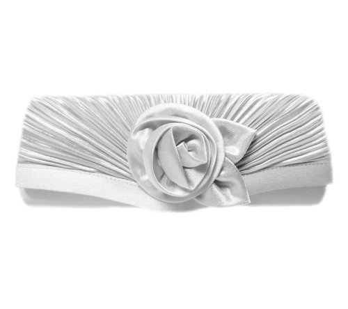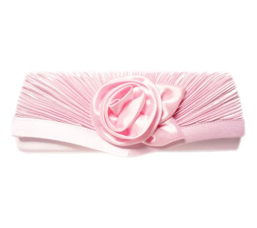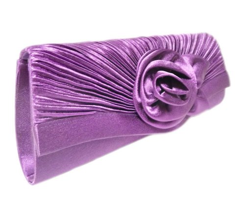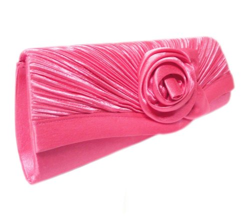 Product Description This is an elegant clutch for the woman on the go! The clutch charms with a lovely satin rose centerpiece. Perfect for an evening out on the town and any special occasion!