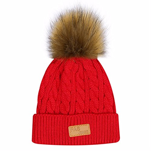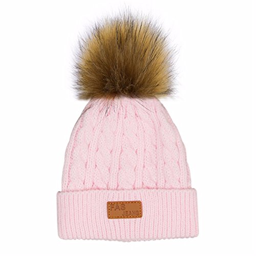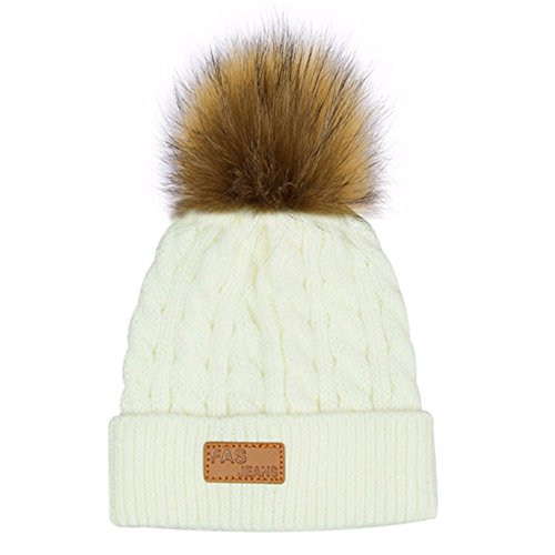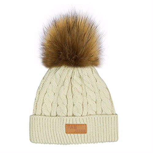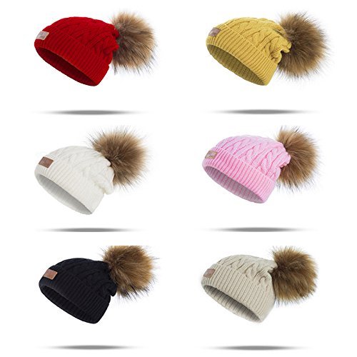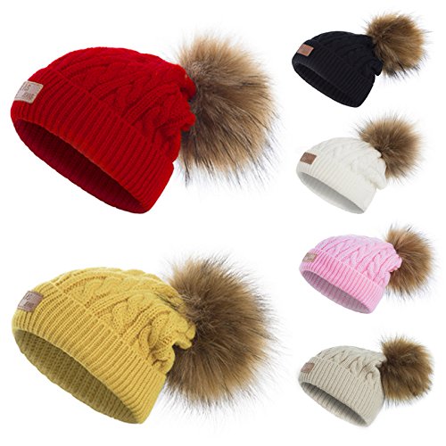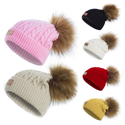 | (Besties Shop)/Accessories/Cold Weather Accessories/DIRECT FROM USA/Kids Winter Pom Ears Chunky Thick Stretchy Soft Knitted Beanie Hat with Faux Fur Pompom |
