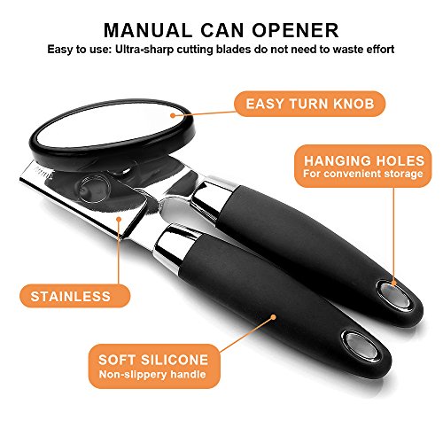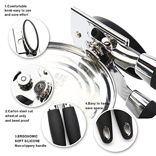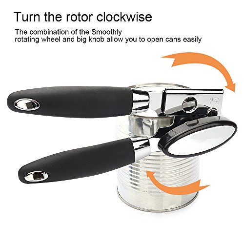 The unique combination of-excellent ergonomic soft grip well-shaped, safe giant knob,smoothly rotating wheel,Makes the experience of using the can opener easier and safe. -get your opening done in seconds!