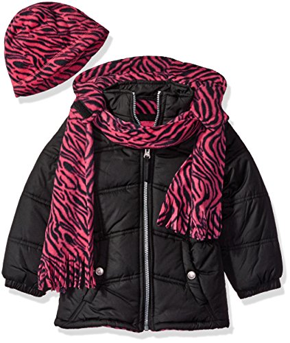 Pink Platinum girls puffer jacket lined with a fleece zebra print,scarf and hat included